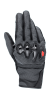Durable, multi-panel main shell construction for durability and comfort. Top hand is a mix of mesh, spandex and leather for enhanced durability and rider comfort. Synthetic suede and leather reinforced palm for improved grip and abrasion resistance. Made with PFAS chemicals Ergonomic 'carbon look' knuckle guard provides exceptional impact and abrasion protection. According to European statutory law the CE mark is a conformity requirement for the marketing of this product. The following standards apply to this product: EN 13594 2015, Level 1 KP. Hook and loop wrist cuff for a personalized closure. Touchscreen compatible index fingertip and thumb for use with smartphones and GPS systems. New construction uses minimal seams for optimized levels of rider comfort. | ||||||